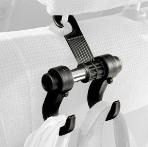 Turn wasted space into storage space! This traveling pro hooks behind your car seat and creates hanging space for handbags, shopping bags, backpacks, umbrellas, and more. Holds up to 50 lbs, holds grocery bags preventing contents from falling out and rolling around on the floor. Traveling with small children- fill a bag of your child"s favorite traveling activities and snacks and hang within easy reach of little hands! Great for accessing travel essentials on long trips. Keeps items securely in place, attaching to rod of head support. Plastic and metal. 5" long x 2" wide x 7" high.